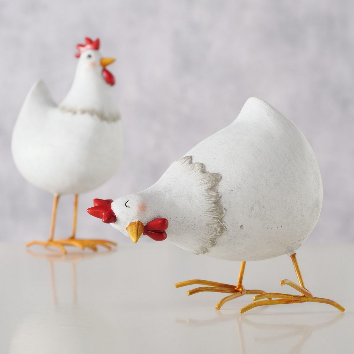 ΚΟΚΟΡΑΣ 2/ass ΦΙΓΟΥΡΑ ΣΧΕΔΙΟ Henny 9Χ7Χ16cm, ΛΕΥΚΟ ΜΕΤΑΛΛΟ, Polyresin