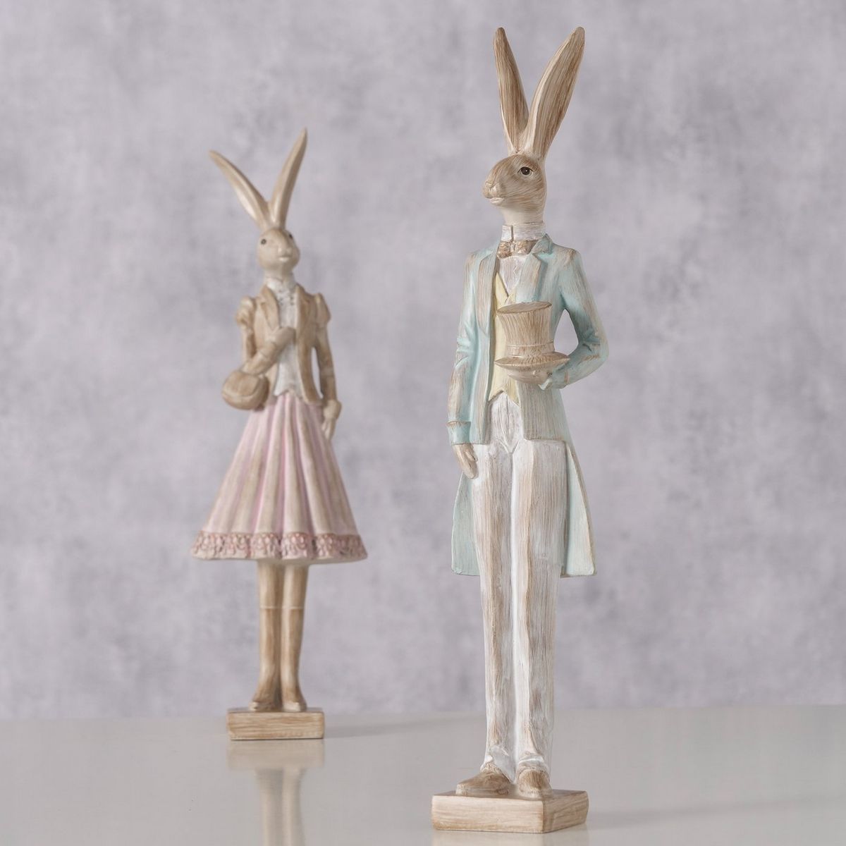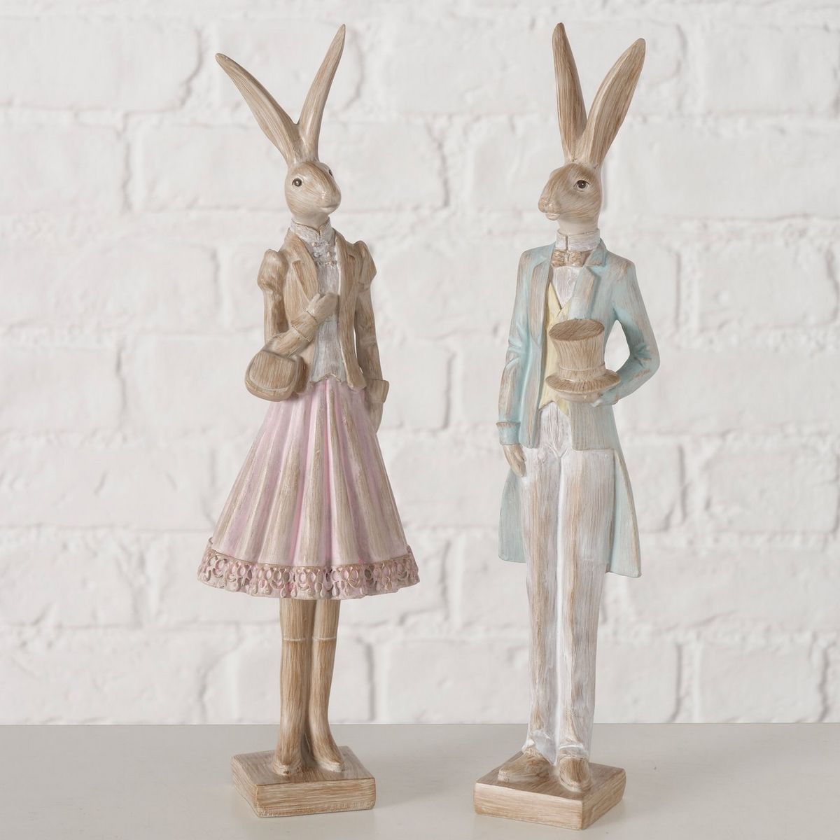 ΛΑΓΟΣ 2/ass ΖΕΥΓΑΡΙ ΦΙΓΟΥΡΑ Doodley 9Χ8Χ31cm , ΚΑΦΕ ΠΡΑΣΙΝΟ ΡΟΖ Polyresin