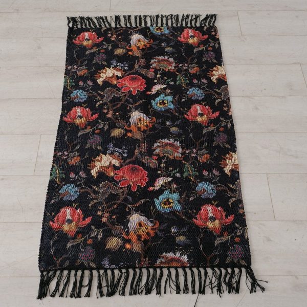 ΧΑΛΙ Valle, Floral, ΜΑΥΡΟ/ΠΟΡΤΟΚΑΛΙ100Pro cotton spot clean only mix, L120 cm, W70 cm, cotton