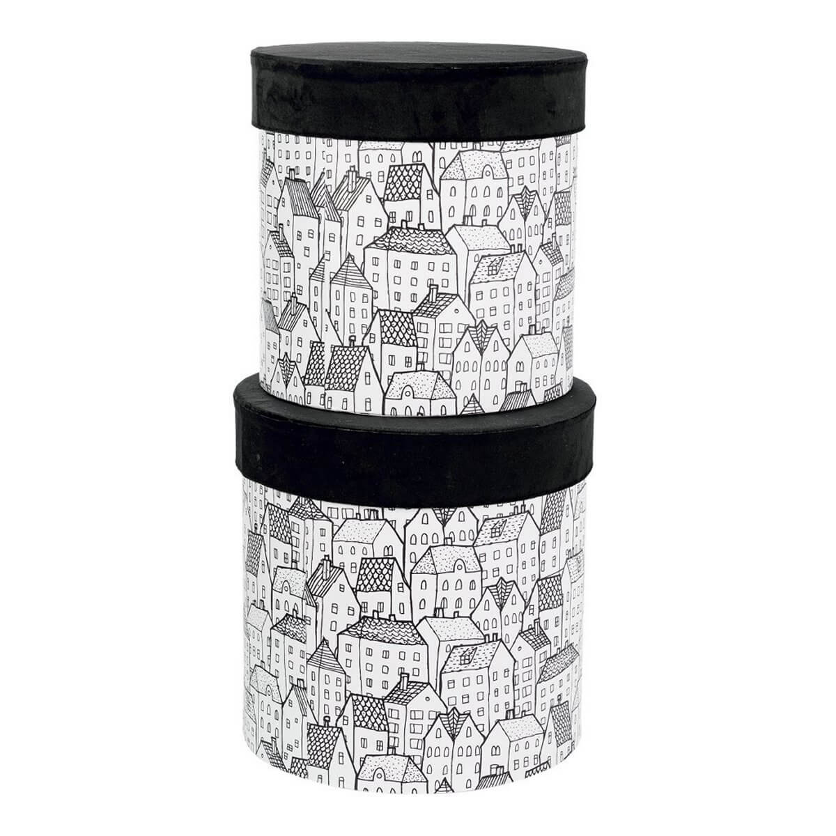 ΚΟΥΤΙ Set/2 ΚΥΛΙΝΔΡΙΚΟ ΜΑΥΡΟ ΒΕΛΟΥΔΟ ΛΕΥΚΟ ΜΕ ΣΠΙΤΑΚΙΑ D23-H25cm D25-H26cm