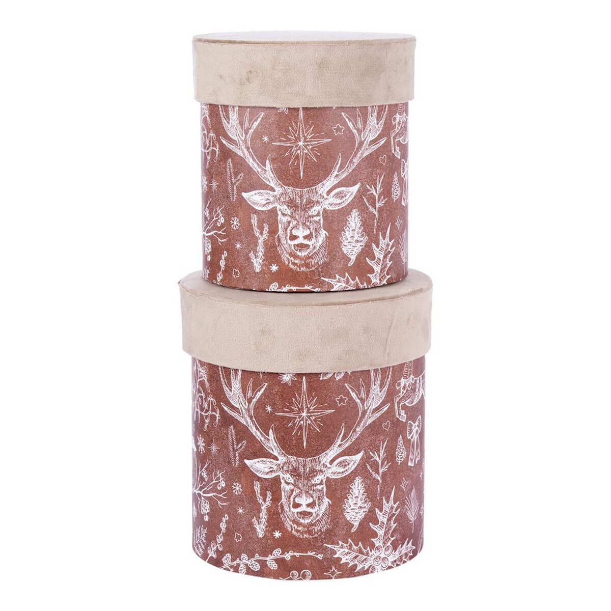 ΚΟΥΤΙ Set/2 ΚΥΛΙΝΔΡΙΚΟ ΜΠΕΖ ΒΕΛΟΥΔΟ ΚΑΦΕ ΤΑΡΑΝΔΟΣ / ΚΟΥΚΟΥΝΑΡΙΑ D16-Η19cm, D18,5-H21cm