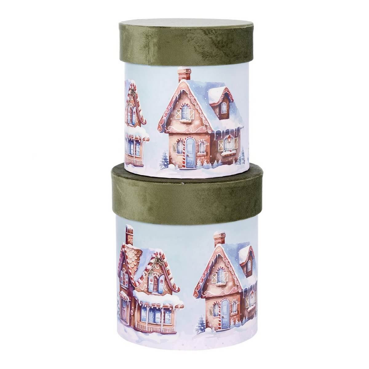 ΚΟΥΤΙ Set/2 ΚΥΛΙΝΔΡΙΚΟ ΠΡΑΣΙΝΟ ΒΕΛΟΥΔΟ ΓΑΛΑΖΙΟ ΜΕ ΜΕ ΣΠΙΤΙΑ D16-Η19cm, D18,5-H21cm
