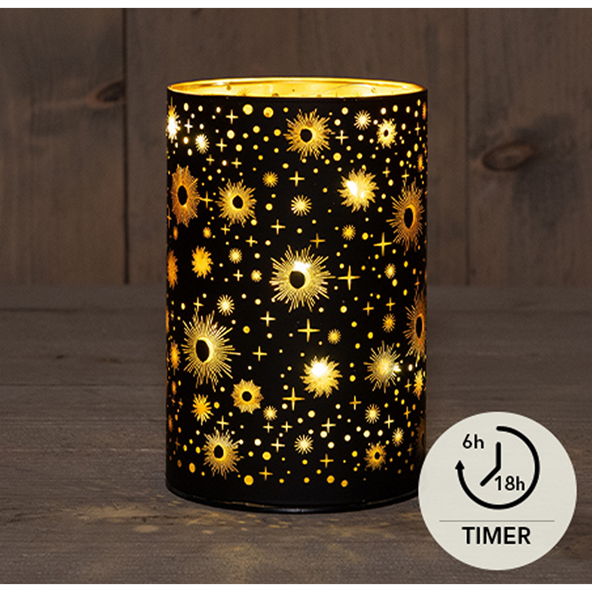 ΚΗΡΟΠΗΓΙΟ ΓΥΑΛΙΝΟ ΚΥΛΙΝΔΡΙΚΟ ΜΑΥΡΟ ΜΕ ΕΣΩΤΕΡΙΚΑ ΧΡΥΣΑ ΑΣΤΕΡΙΑ 10X15CM 8LED ΘΕΡΜΟ ΛΕΥΚΟ 3XAA ON/OFF/TIMER 6H ΜΠΑΤΑΡΙΑΣ