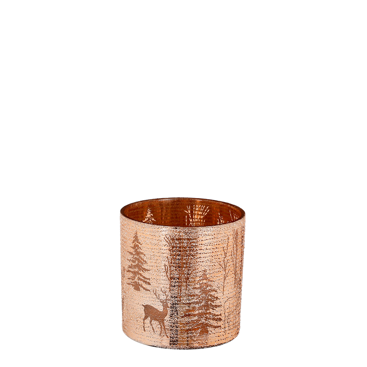ΚΗΡΟΠΗΓΙΟ ΜΕ ΣΧΕΔΙΟ ΔΑΣΟΣ Hurricane ΡΟΖ ΧΡΥΣΟ – h12,5 d12,5cm ΓΥΑΛΙ