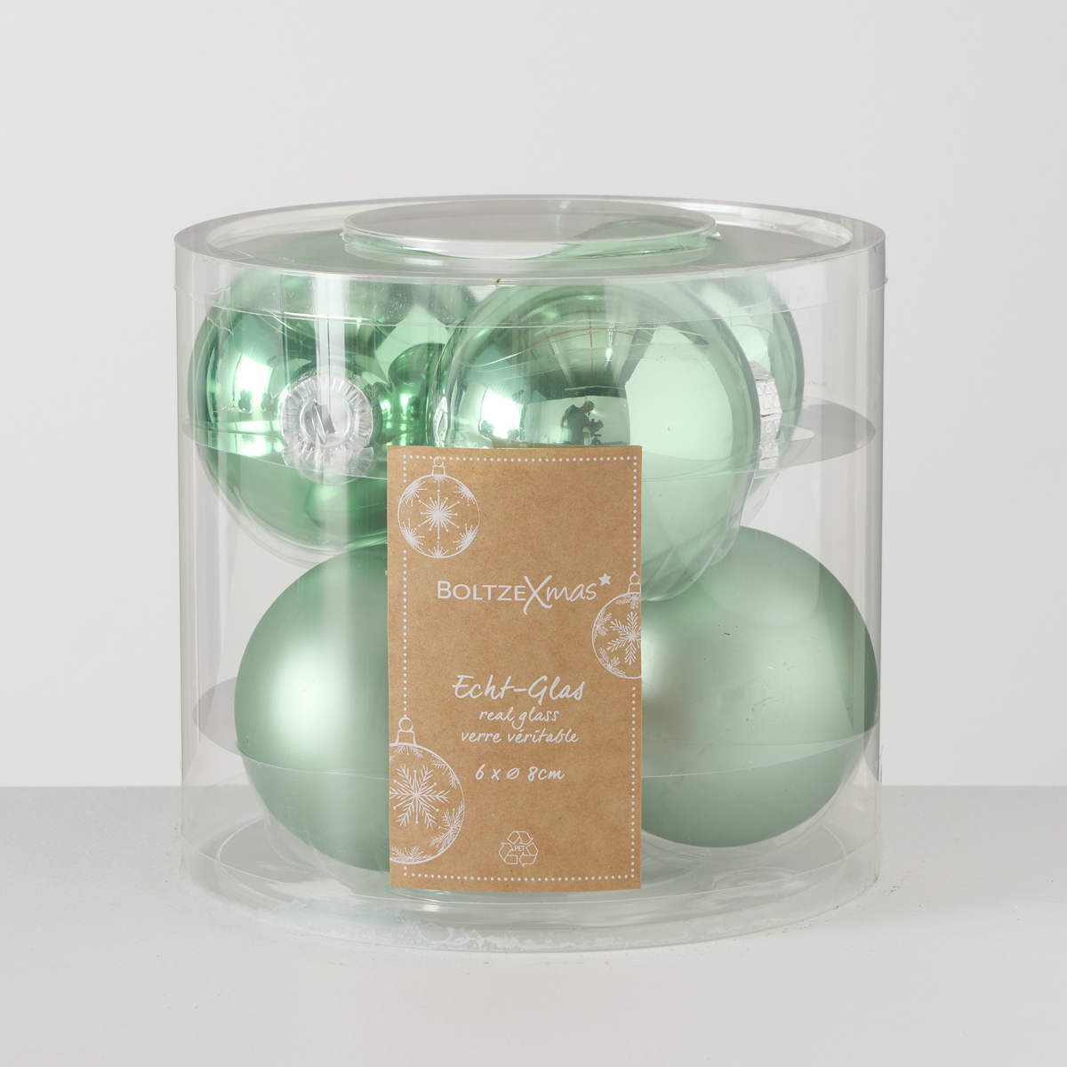 ΜΠΑΛΕΣ 6τμχ ΧΡΙΣΤΟΥΓ ΠΡΑΣΙΝΟ ΣΥΣΚΕΥΑΣΙΑ Ball, D8cm ΓΥΑΛΙ