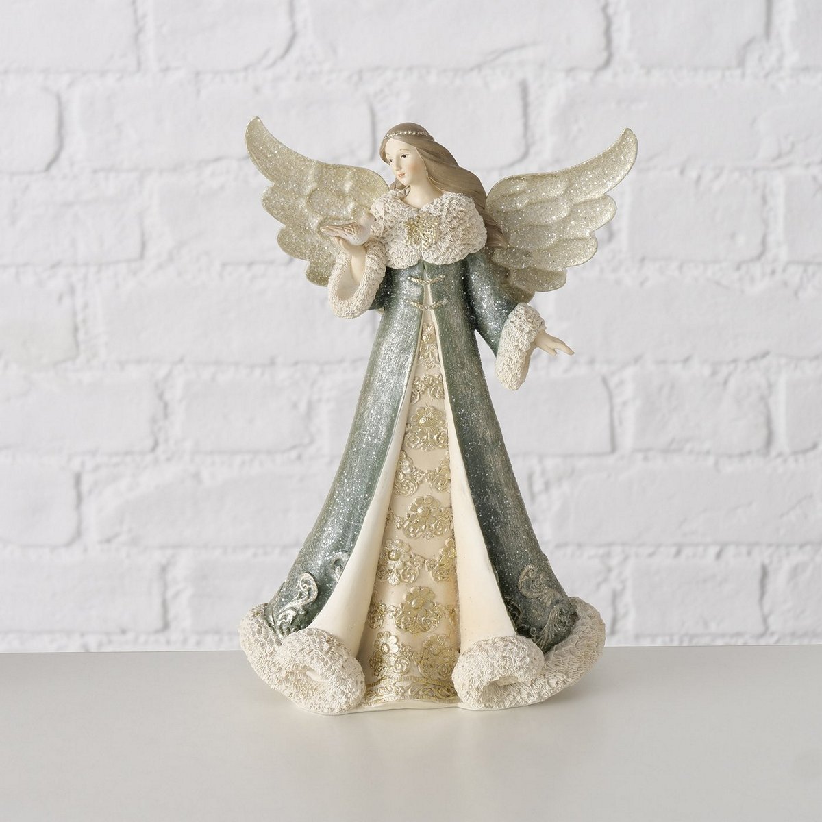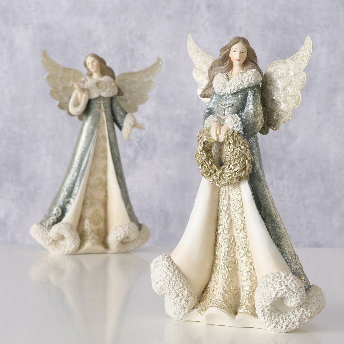ΑΓΓΕΛΟΣ 2/ass ΦΙΓΟΥΡΑ Josephina 15x9x27cm ΚΡΕΜ ΑΣΗΜΙ ΠΡΑΣΙΝΟ ΜΕΤΑΛΛΟ Polyresin