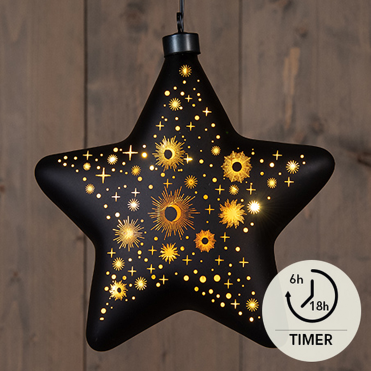 ΑΣΤΕΡΙ ΓΥΑΛΙΝΟ 10LED ΜΑΥΡΟ ΜΕ ΧΡΥΣΑ ΑΣΤΕΡΙΑ ΕΣΩΤΕΡΙΚΑ 19CM 10 LED ΘΕΡΜΟ ΛΕΥΚΟ 2XAAA ON/OFF/TIMER 6H ΜΠΑΤΑΡΙΑΣ