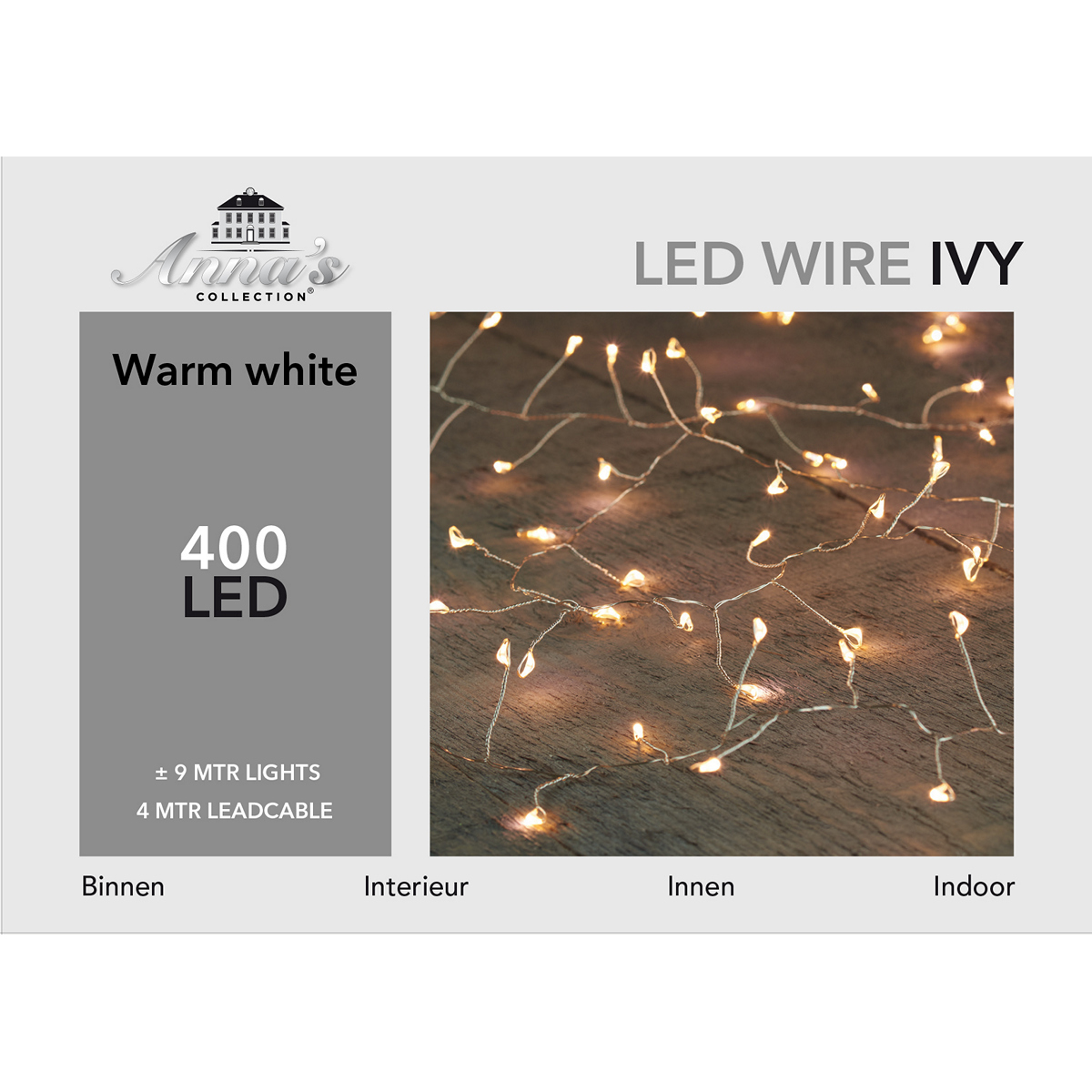 ΦΩΤΑΚΙΑ IVY 400LED/9M, 12V/IP20 ΕΣΩΤΕΡΙΚΟΥ ΧΩΡΟΥ, ΑΣΗΜΙ ΣΥΡΜΑ ΘΕΡΜΟ ΛΕΥΚΟ ΦΩΣ 4Μ ΔΙΑΦ.ΚΑΛΩΔΙΟ, ΜΕΤΑΣΧΗΜΑΤΙΣΤΗΣ 3,6VA