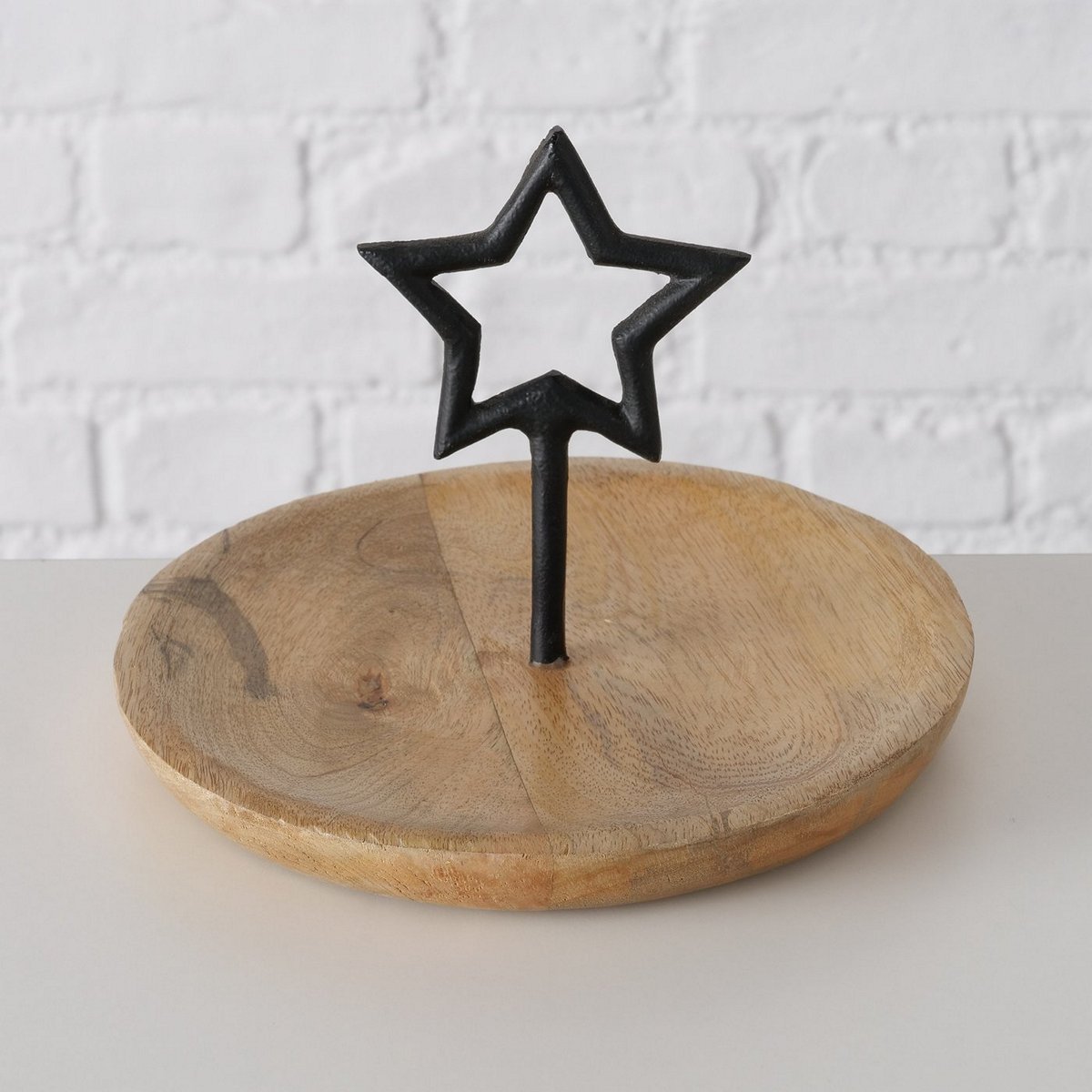 ΔΙΣΚΟΣ ΣΤΡΟΓΓΥΛΟΣ Set/2 ΞΥΛΟ Mango καφε ΜΕ ΧΕΡΟΥΛΙ ΜΕΤΑΛΟ ΜΑΥΡΟ ΣΧΕΔΙΟ ΑΣΤΕΡΙ Etano H15-20cm D20-25cm