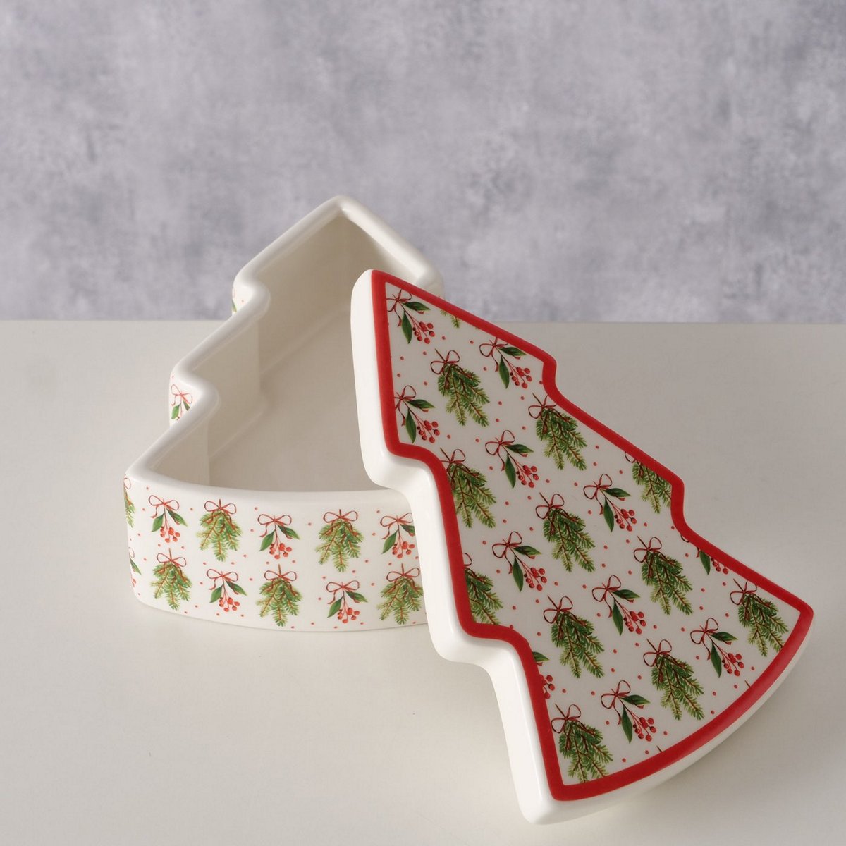 ΔΟΧΕΙΟ ΑΠΟΘΗΚΕΥΣΗΣ ΔΕΝΤΡΟ Noelle ΚΟΚΚΙΝΟ ΛΕΥΚΟ ΠΡΑΣΙΝΟ 20X13,5X8cm ΚΕΡΑΜΙΚΟ