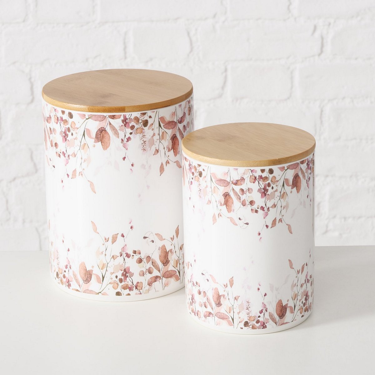 ΔΟΧΕΙΟ ΑΠΟΘΗΚΕΥΣΗΣ Set/2 ΣΧΕΔΙΟ ΦΥΛΛΑ ΚΑΦΕ ΡΟΖ Bernada H16-19cm D12-14cm ΚΑΠΑΚΙ Bamboo ΜΕ ΣΙΛΙΚΟΝΗ