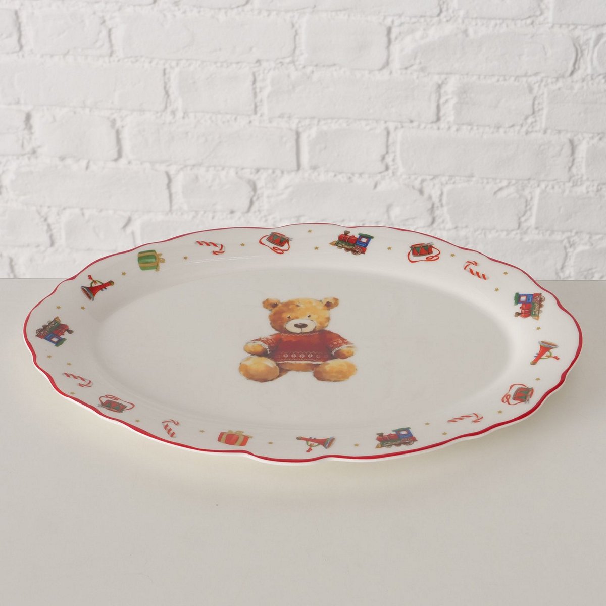 ΠΙΑΤΕΛΑ ΟΒΑΛ ΑΡΚΟΥΔΑΚΙΑ Bailey ΚΑΦΕ ΚΟΚΚΙΝΟ ΛΕΥΚΟ 31X21,2X2cm New Bone ΠΟΡΣΕΛΑΝΗ