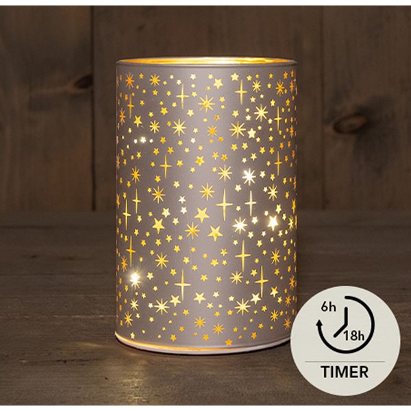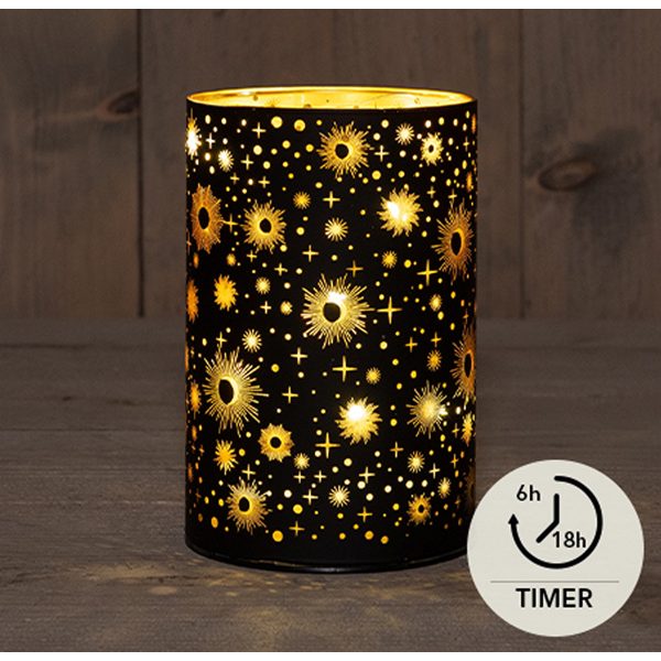 ΚΗΡΟΠΗΓΙΟ ΓΥΑΛΙΝΟ ΚΥΛΙΝΔΡΙΚΟ ΜΑΥΡΟ ΜΕ ΕΣΩΤΕΡΙΚΑ ΧΡΥΣΑ ΑΣΤΕΡΙΑ 10X15CM 8LED ΘΕΡΜΟ ΛΕΥΚΟ 3XAA ON/OFF/TIMER 6H ΜΠΑΤΑΡΙΑΣ