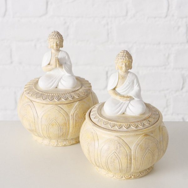 ΔΟΧΕΙΟ ΑΠΟΘΗΚ 2/ass ΔΙΑΚΟΣΜ ΒΟΥΔΑΣ Jamory H14cm D10cm ΜΠΕΖ ΛΕΥΚΟPlastic Polyresin