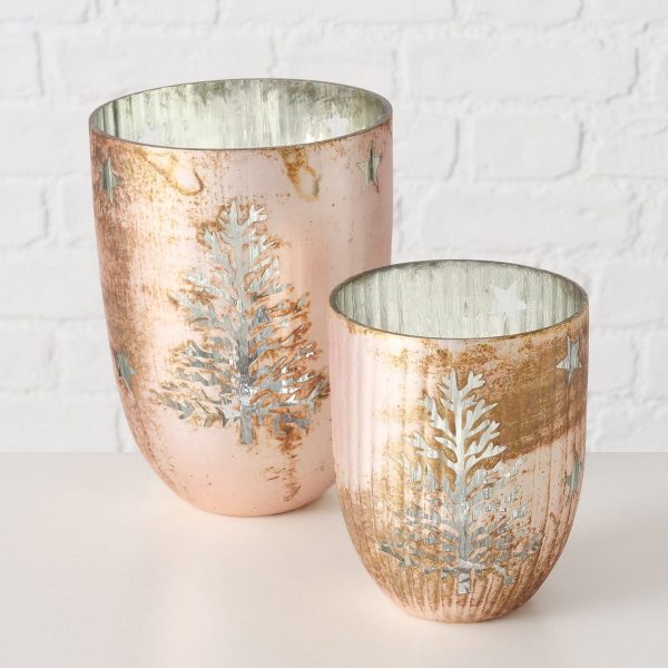 ΚΗΡΟΠΗΓΙΟ Set/2 ΣΧΕΔΙΟ ΦΥΛΛΟ ΑΣΤΕΡΙΑ ΑΣΗΜΙ ΡΟΖ Grenolia D12-14 H15-21cm ΓΥΑΛΙ