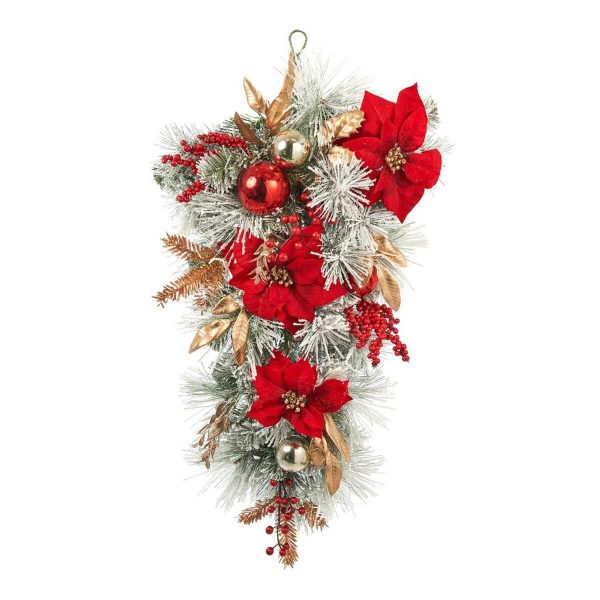 ΓΙΡΛΑΝΤΑ ΔΙΑΚΟΣΜΗΤΙΚΟ ΠΕΥΚΟ ΧΙΟΝΙΣΜΕΝΟ ΜΕ ΚΟΚΚΙΝΟ ΑΛΕΞΑΝΔΡΙΝΟ ΧΡΥΣΑ ΦΥΛΛΑ LUSSO 80cm
