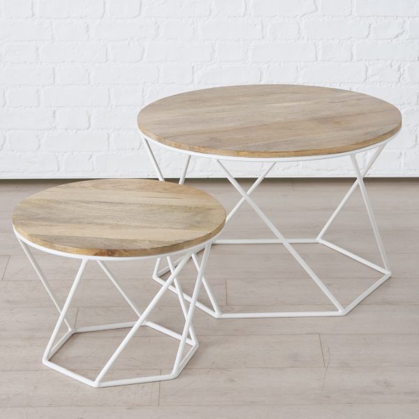 ΤΡΑΠΕΖΙ ΣΑΛΟΝΙΟΥ SET/2 ΛΕΥΚΟ ΜΕΤΑΛ ΠΟΔΙ ΦΥΣ ΞΥΛΟ HayaSofa table, H37-47cm W50-70cm D50-70cm mixed materials colour-mix