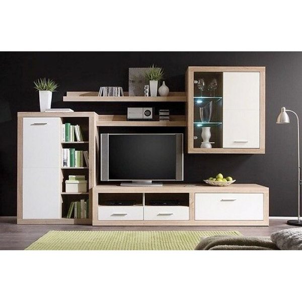 ΣΥΝΘΕΣΗ NICE ΣΕΤ/4 SONOMA OAK / ΛΕΥΚΟ ΜΕ ΦΩΤΙΣΜΟ (ΕΠΙΠΛΟ TV, 2 ΡΑΦΙΑ, ΕΠΙΤΟΙΧΙΟ ΝΤΟΥΛΑΠΙ, ΝΤΟΥΛΑΠΙ) 290/190/48cm ΜΕΛΑΜΙΝΗ (ΠΕΡΙΛΑΜΒΑΝΕΤΑΙ ΟΔΗΓΟΣ ΣΥΝΑΡΜΟΛΟΓΗΣΗΣ)